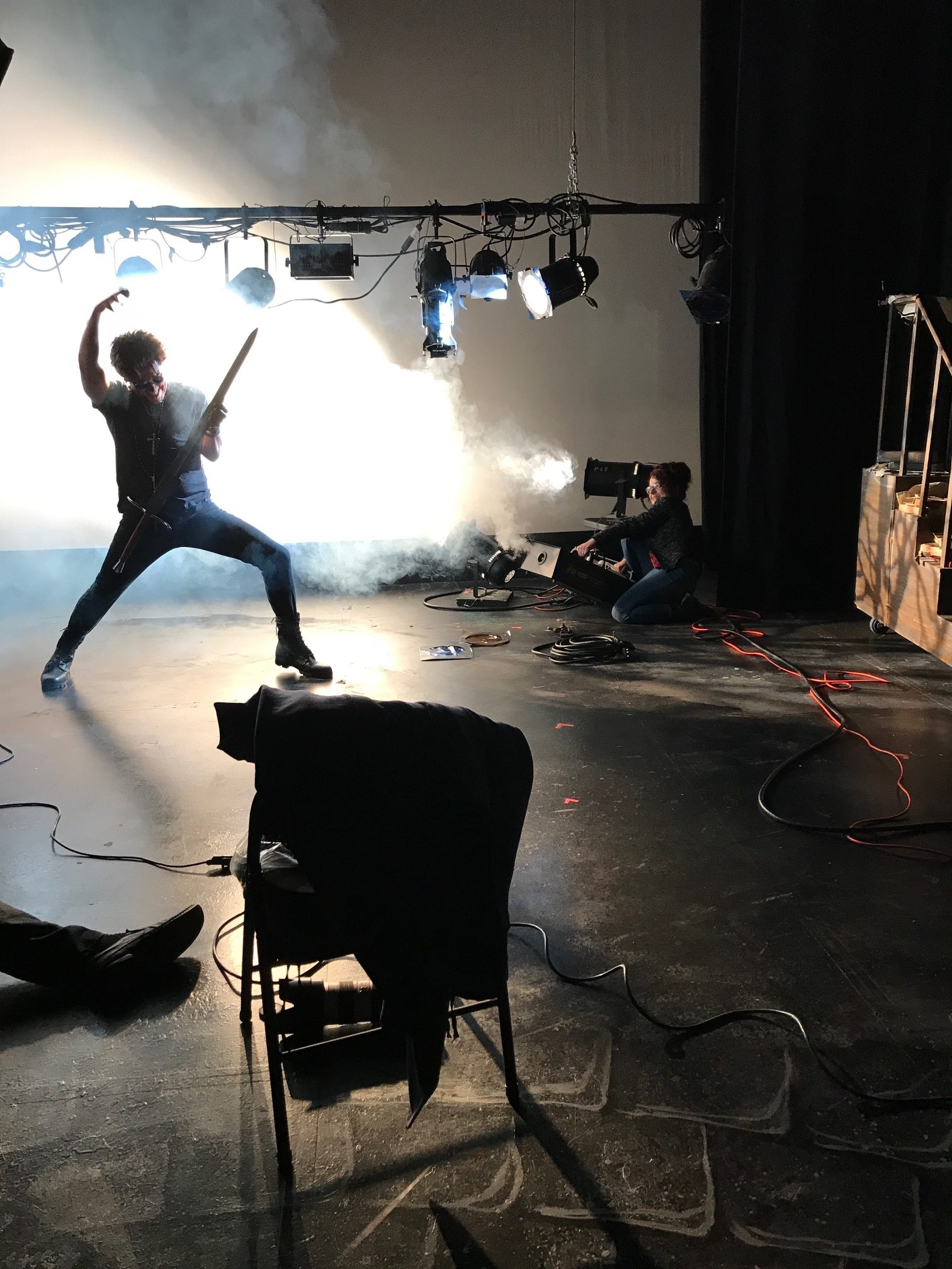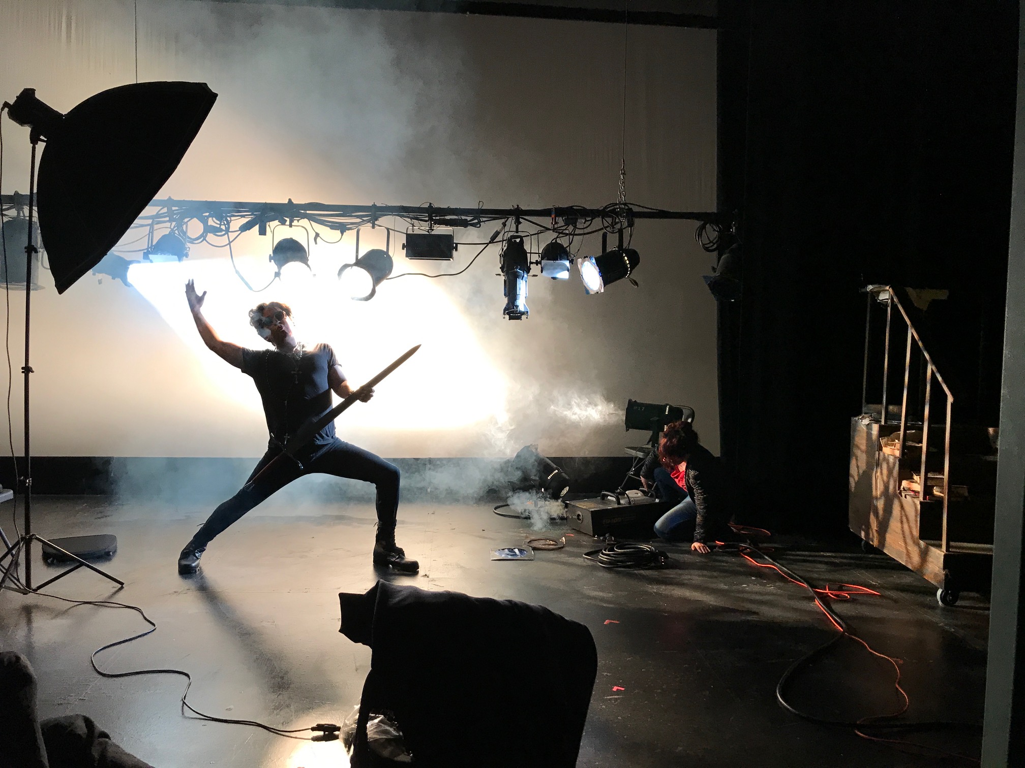 As we wrapped up the heartfelt holiday classic A Christmas Carol, we also geared up our stage and Resident Artist Rafael Goldstein for a photo shoot for our upcoming production of Shakespeare’s Henry V. You might know Rafael from past shows, but you won’t recognize him after his transformation from the sweet-faced audience favorite to ferocious warrior king. Thanks to the work of photographer Daniel Reichert and makeup artist Klint Flowers, as well as a blast of Led Zeppelin music to set the scene, our Henry looks like the King of Rock ‘N’ Roll.