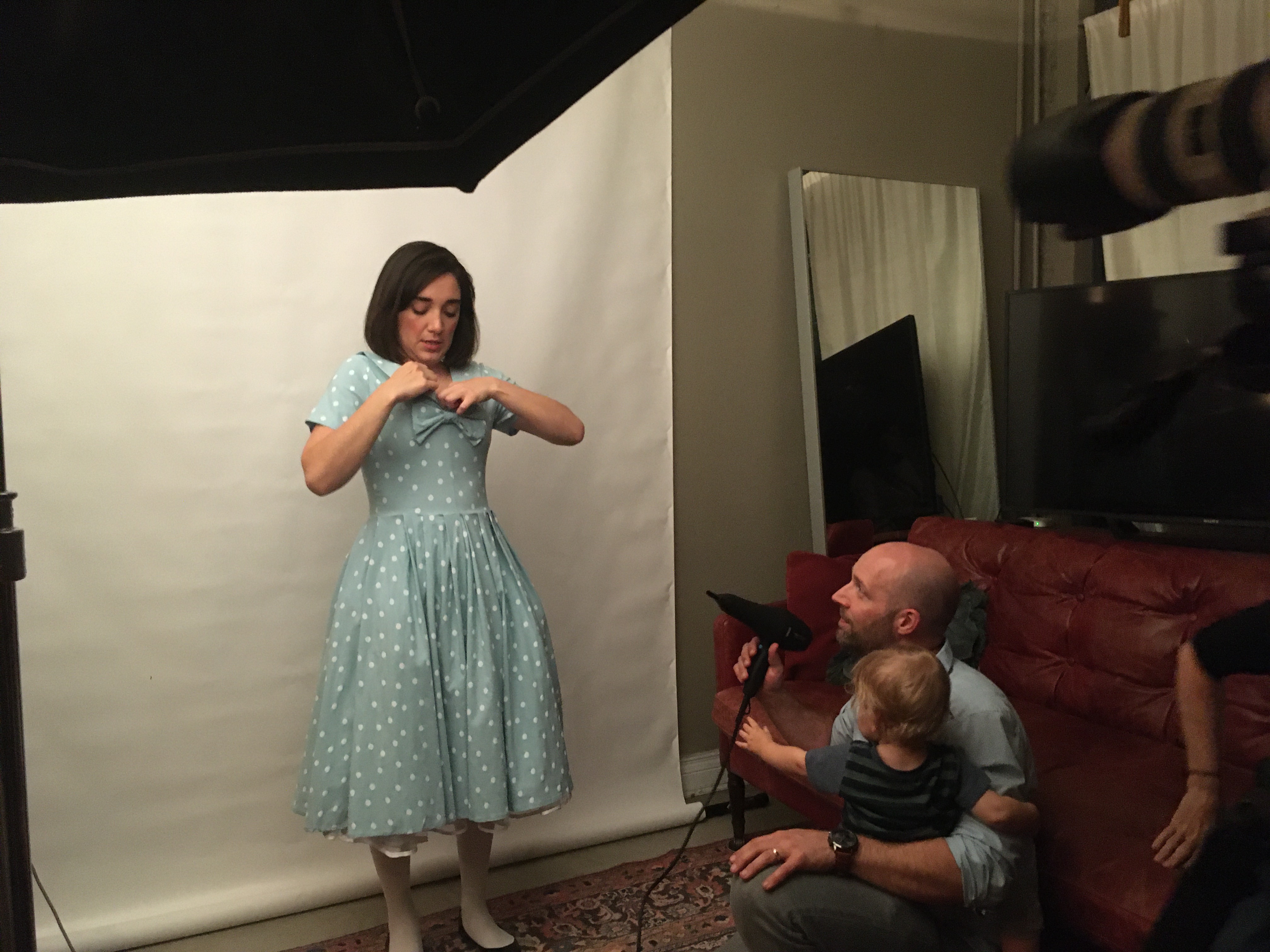 How do you make it look like you’re falling when you’re not actually falling? Resident Artist Erika Soto was game to find out in our Alice in Wonderland photoshoot. Paired with a high stool and a couple of hairdryers, she channeled her imagination (and a lot of core strength training) to create the illusion of her upside-down tumble into Lewis Carroll’s fantastical dreamland. Check out footage of our beloved actress to see how we get that amazing windblown effect!