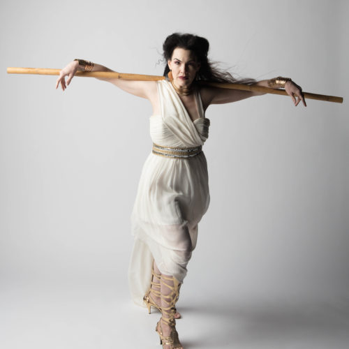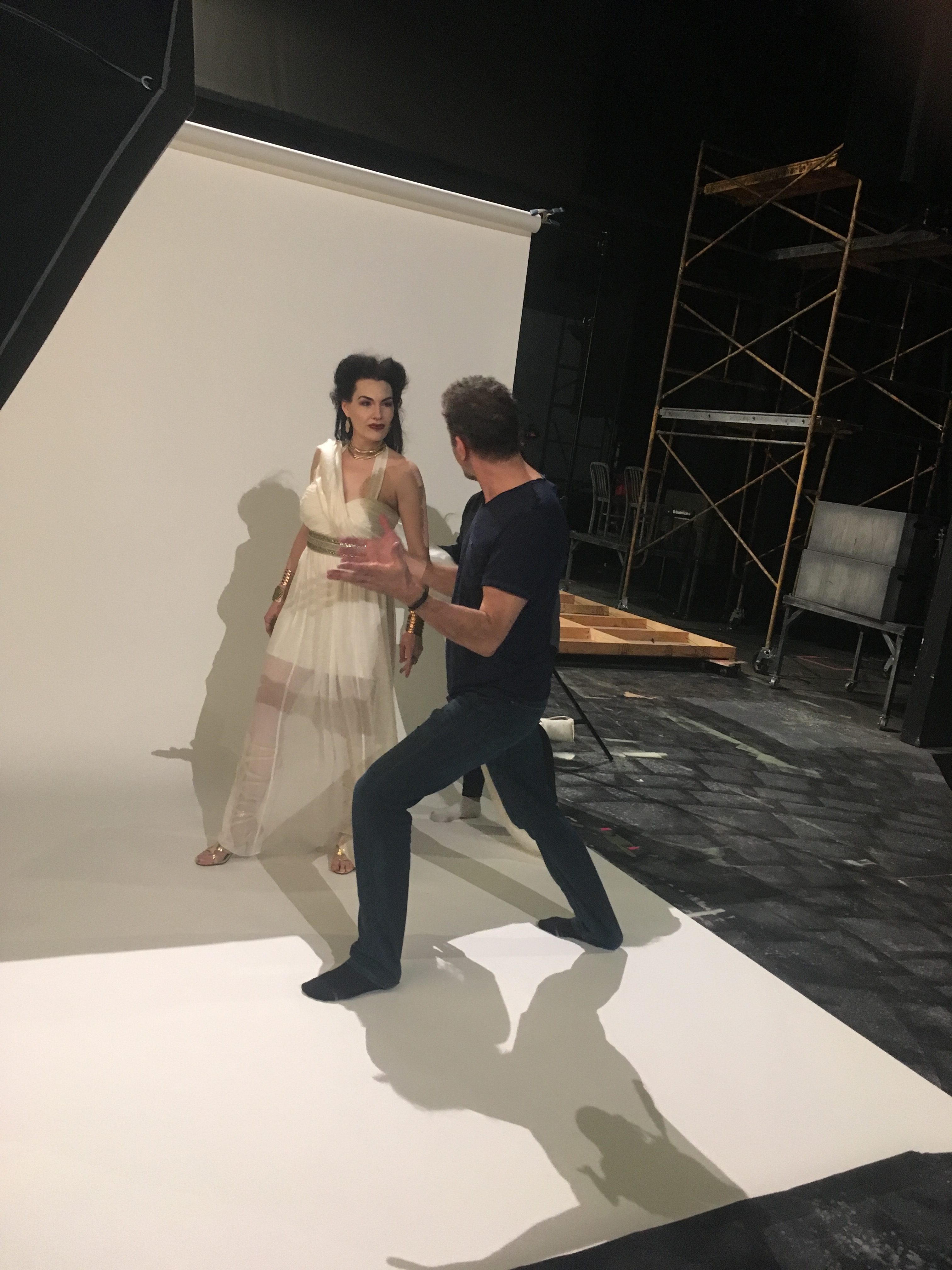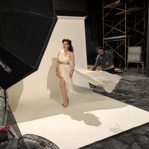 Finally, Trisha Miller geared up as the goddess Athena for our Greek-inspired photo shoot for Argonautika. We had to pull all the stops – hair, make-up, costumes, and, of course, a couple of giant fans to dramatically blow through her hair through the wind. The result was a stunning introduction to Mary Zimmerman’s modern retelling of the Greek myth of Jason and the Argonauts.