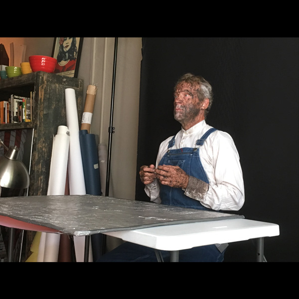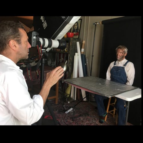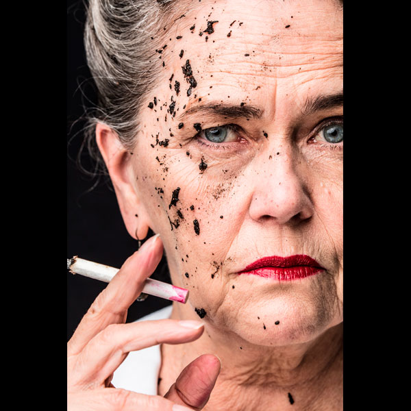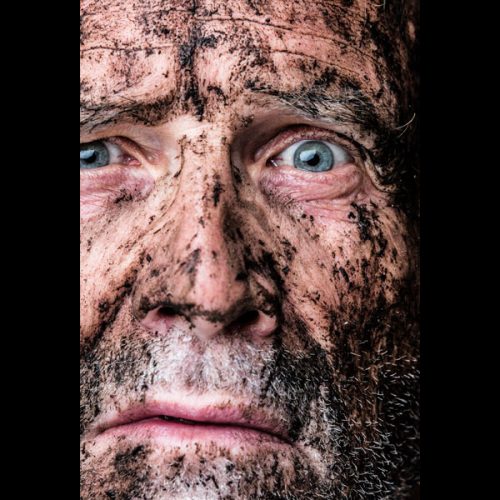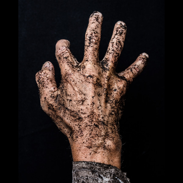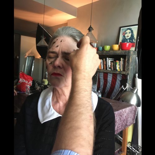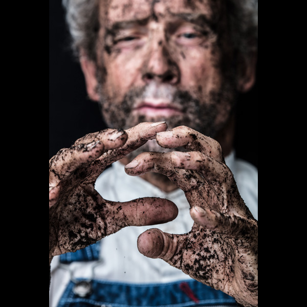 Every family has its dirt. In this case – literally! Our two leads Deborah Strang and Geoff Elliott had to get down and dirty to prepare for our Buried Child photoshoot. Deborah managed to get away with an artful smattering of dirt, but Geoff had to smear mud all over his face and his hands to complete his character’s look. However, if you take a look below, you’ll see that it was totally worth it.
