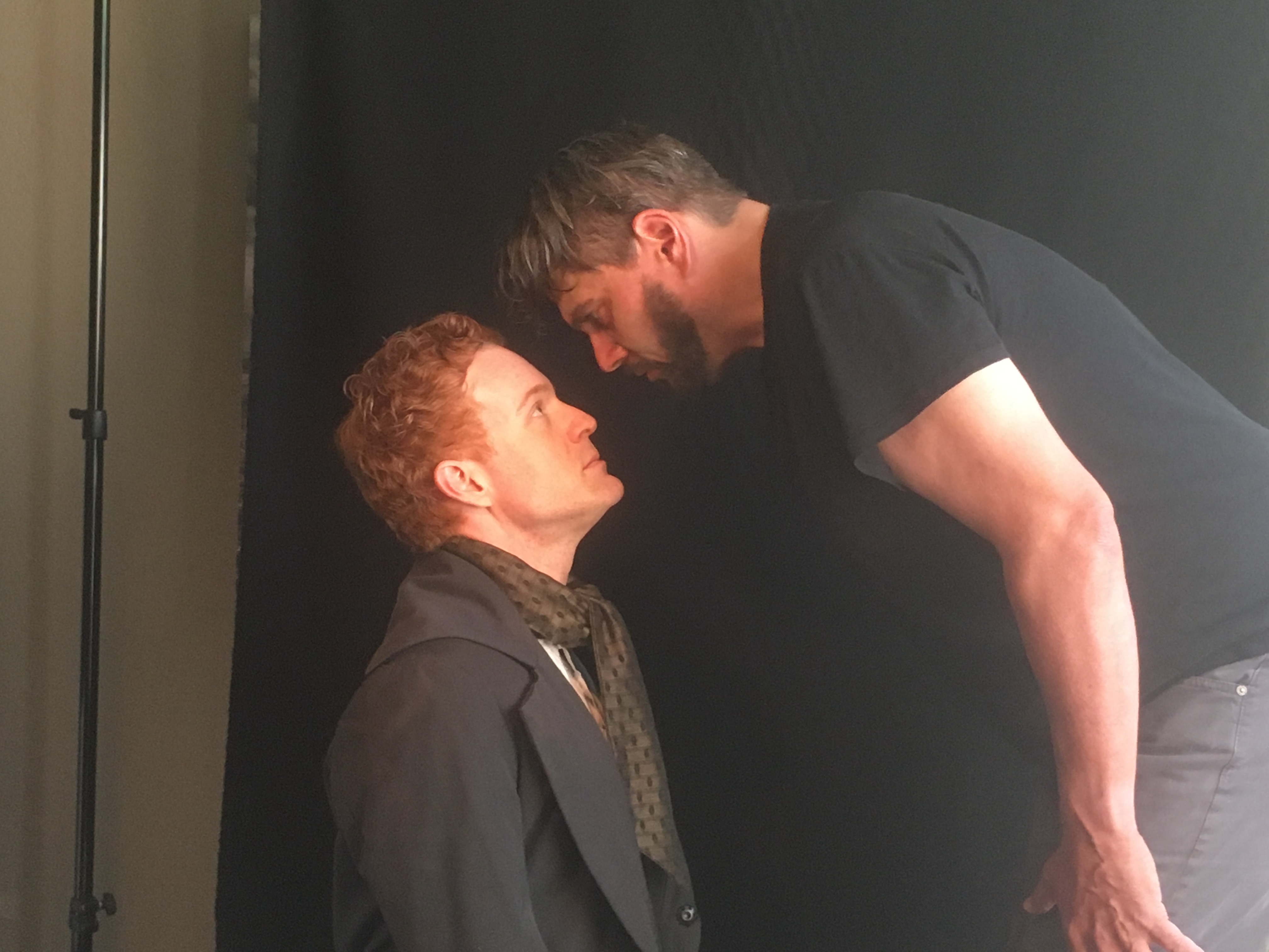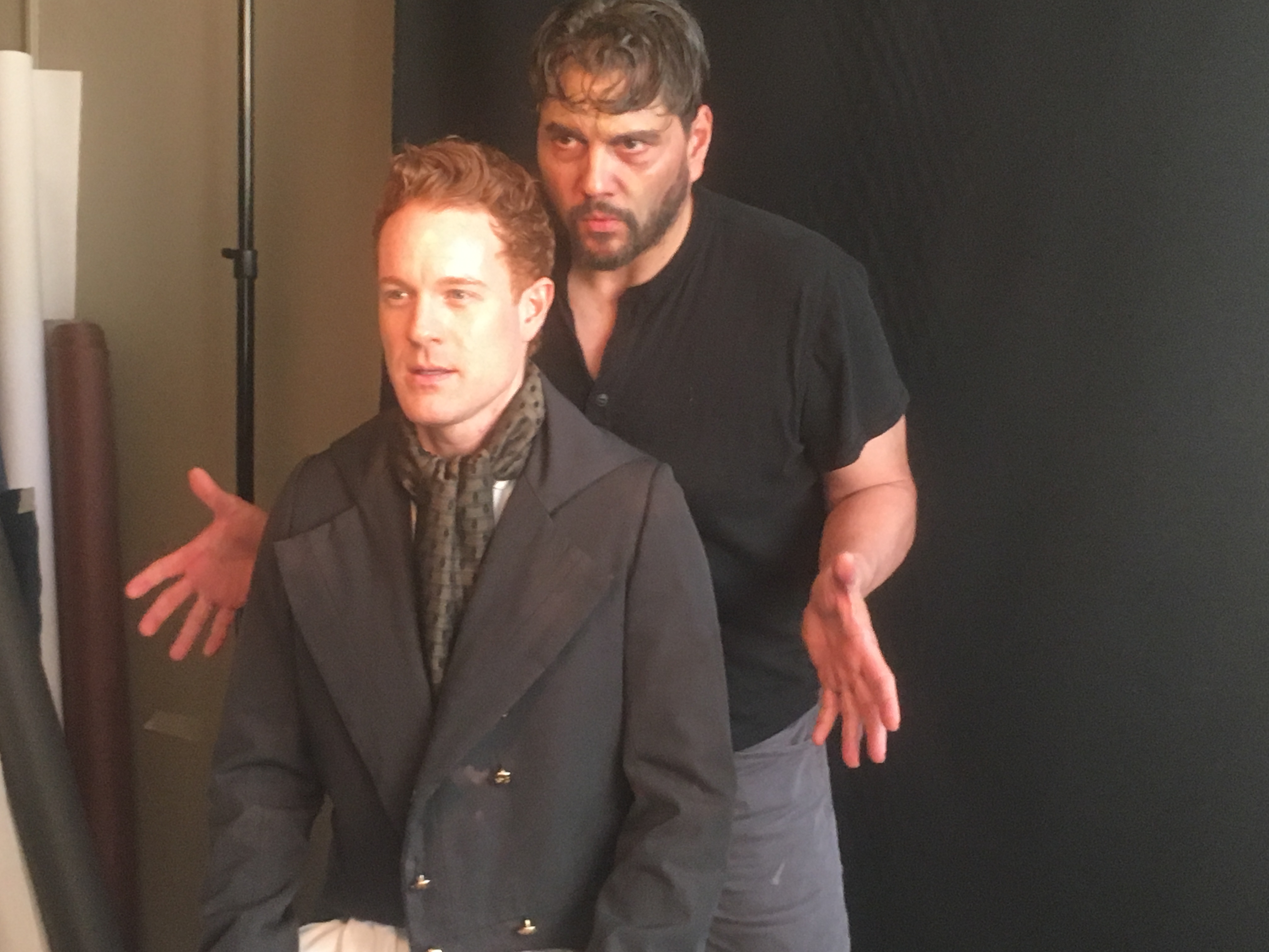 Kasey Mahaffy as Victor Frankenstein and Michael Manuel as the Creature.