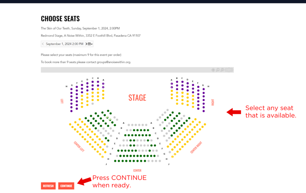 Select any seat that is available and press continue.