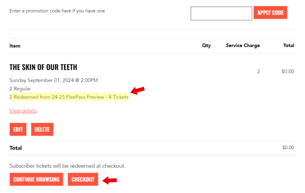On the next page, you will see your FlexPass voucher has applied to the tickets you selected. Press checkout.